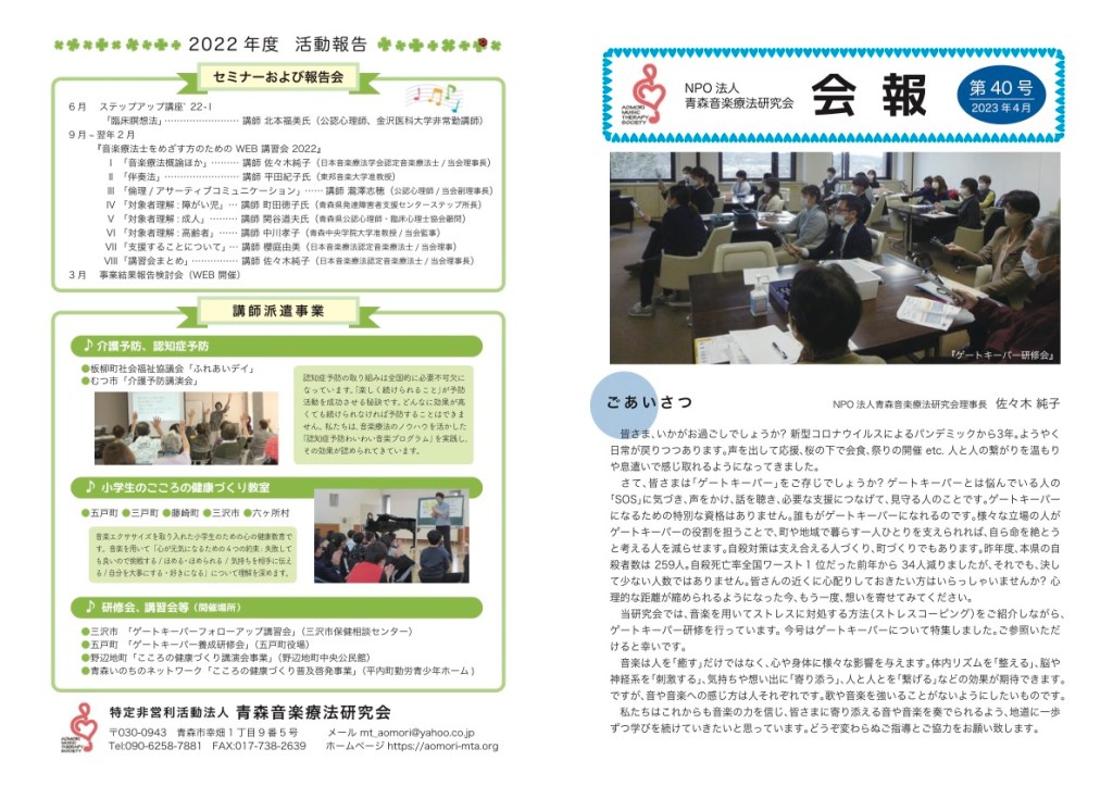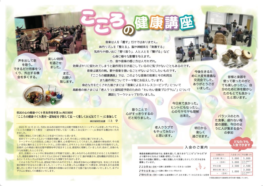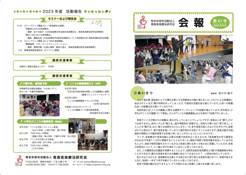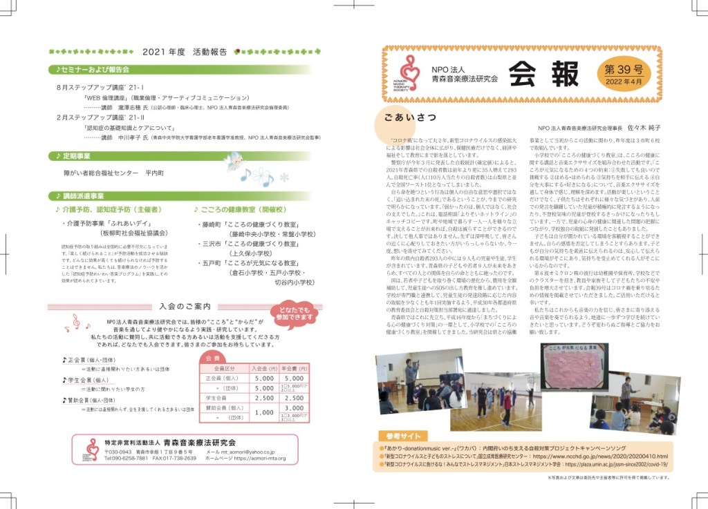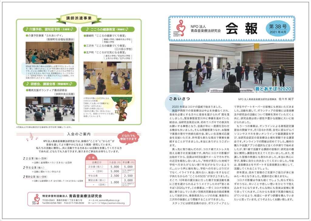 当研究会で発行している会報です。 音楽療法研究会会報42号オモテ面out2ダウンロード 音楽療法研究会会報42号ウラ面out2ダウンロード 会報36号 会報35号① 会報35号② 会報34号① 会報34号② 会報33号① 会報33号② 会報32号① 会報32号② 会報31号 会報30号 会報29号 共有: クリックして X で共有 (新しいウィンドウで開きます) X Facebook で共有するにはクリックしてください (新しいウィンドウで開きます) Facebook いいね 読み込み中…