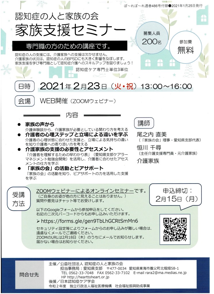 認知症の人と家族の会 家族支援セミナー 投稿日: 2021年1月29日 投稿者: aomorimta 共有: X で共有 (新しいウィンドウで開きます) X Facebook で共有 (新しいウィンドウで開きます) Facebook いいね 読み込み中… 関連