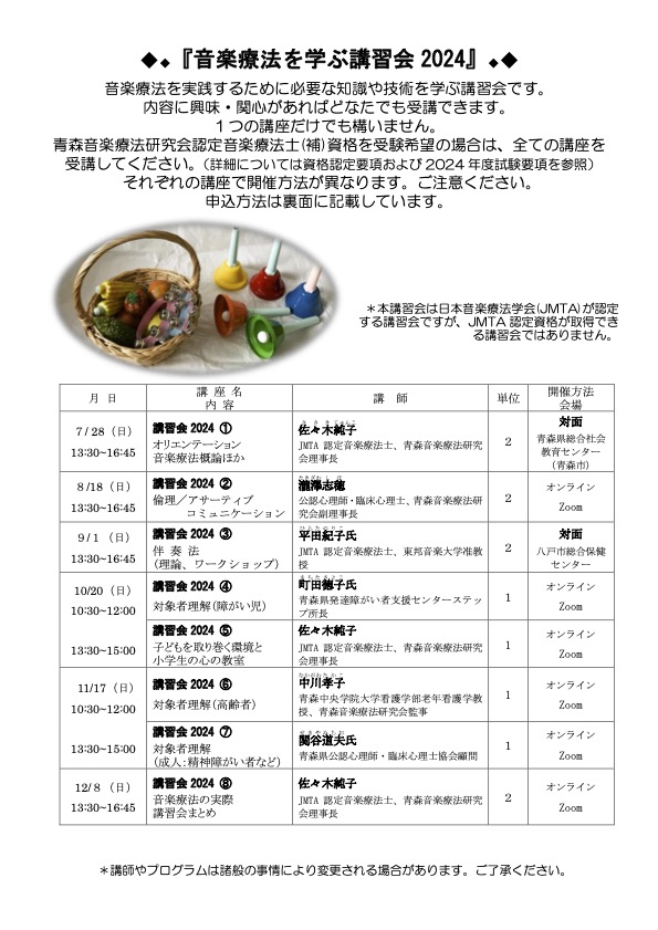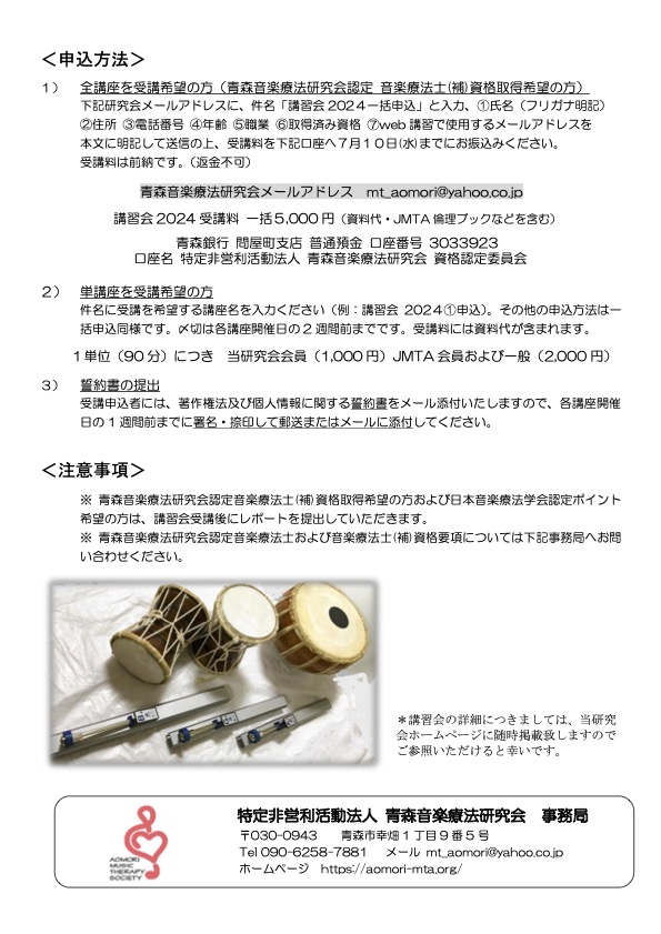 音楽療法を学ぶ講習会2024のお知らせ 投稿日: 2024年5月23日2024年11月11日 投稿者: aomorimta 2024e8ac9be7bf92e4bc9ae38381e383a9e382b7-hp-2024.5-1ダウンロード 2024e8ac9be7bf92e4bc9ae8ac9be5baa7e58685e5aeb9-1ダウンロード 共有: クリックして X で共有 (新しいウィンドウで開きます) X Facebook で共有するにはクリックしてください (新しいウィンドウで開きます) Facebook いいね 読み込み中… 関連